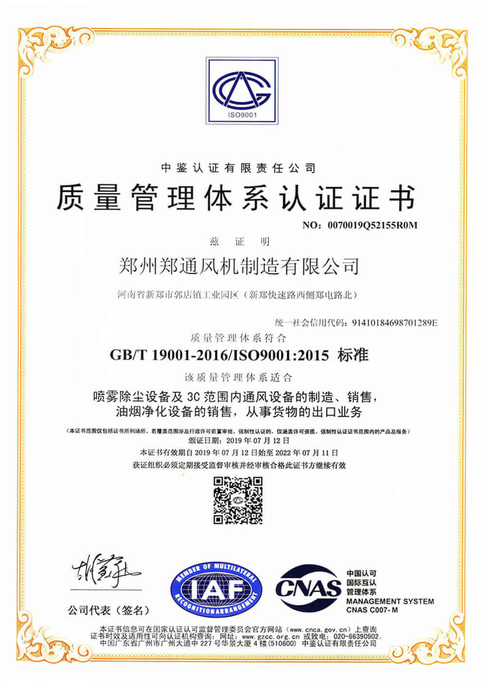鄭通風機主要產(chǎn)品包括:高壓風機、不銹鋼風機、消防排煙風機、防腐防爆風機、廚房排油煙風機、玻璃鋼風機、鍋爐引風機、軸流風機、柜式離心風機、鍋爐引風機,產(chǎn)品通過ISO9001、ISO14001、ISO45001國際標準化組織制定的質(zhì)量管理體系認證,部分產(chǎn)品通過了3C認證和國家防爆電器產(chǎn)品質(zhì)量監(jiān)督檢驗中心認證。